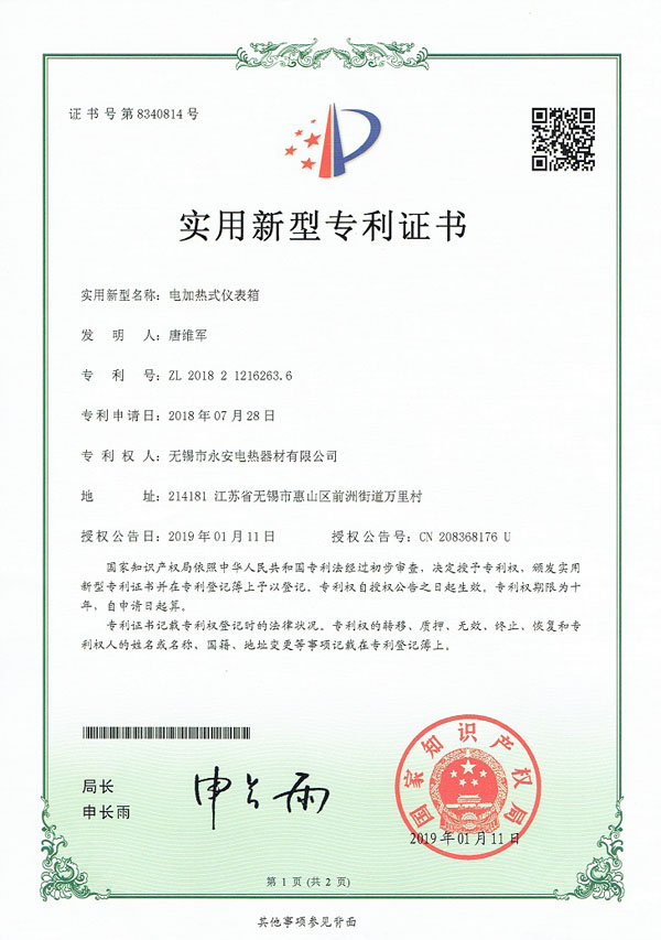 专利实用-箱体防爆电加热器